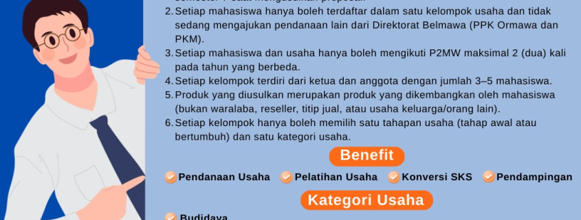 Punya ide usaha? Atau sudah punya bisnis yang ingin dikembangkan? Ini saatnya kamu membawa ide tersebut naik level melalui Program Pembinaan Mahasiswa Wirausaha (P2MW)!